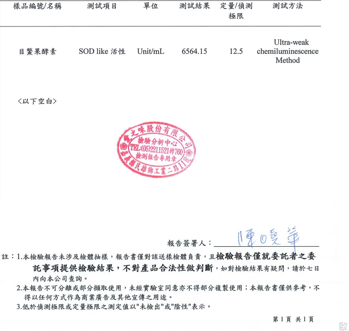 好吸收 來自天堂的果實 高SOD 每mL6564 unit 含 豐富 苆紅素 ,胡蘿蔔素